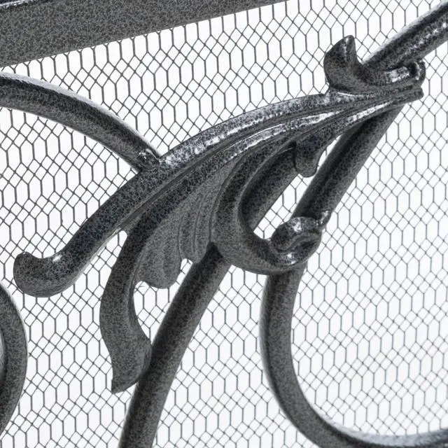 This highly decorative fireplace screen is made with iron for durability, and the aged, powdered-coated finish gives this screen a classic appearance.