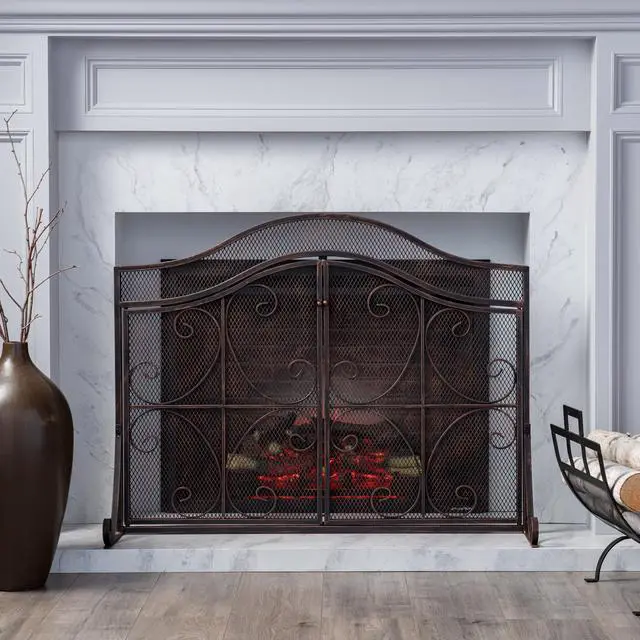 CONTEMPORARY: Our fireplace screen incorporates a simple camelback silhouette with ornamental scrollwork design for a truly contemporary look. With fine diamond mesh and a simple brushed finish, this accessory brings out a simplistic style that emphasizes functionality.