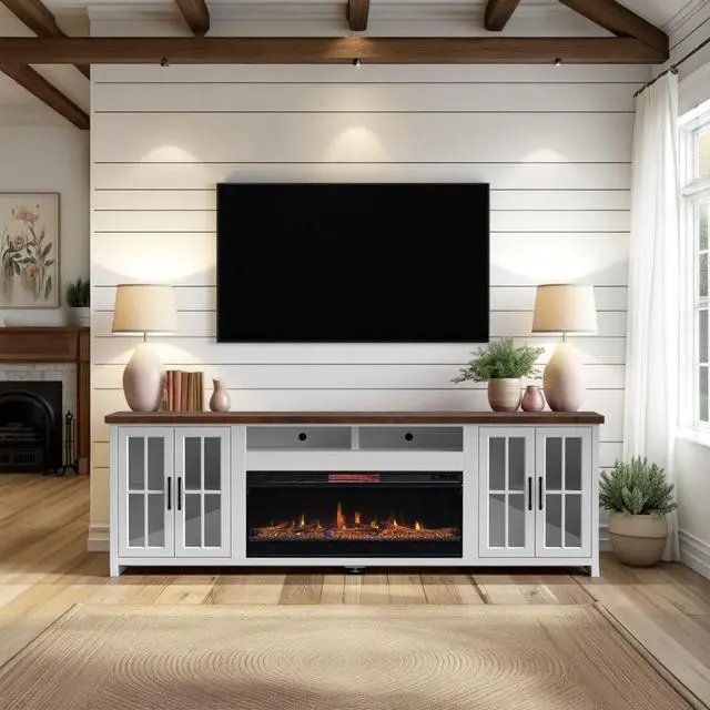 Minimal assembly required - use four (included) screws to secure fireplace insert to console