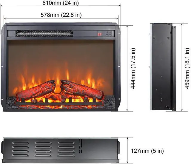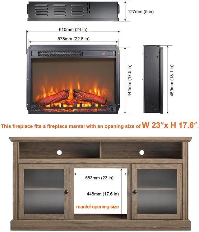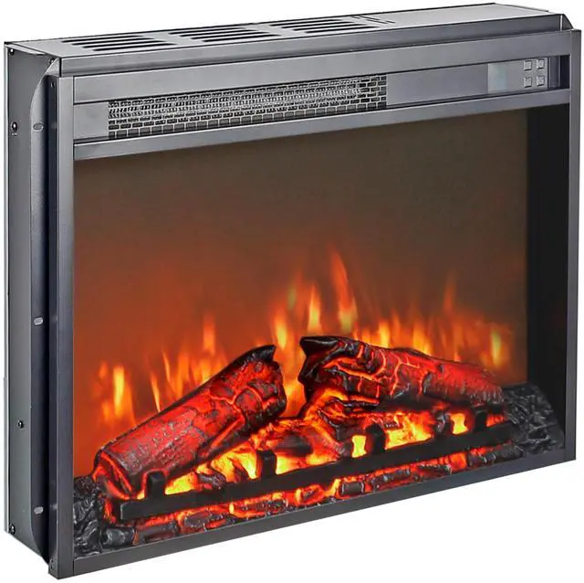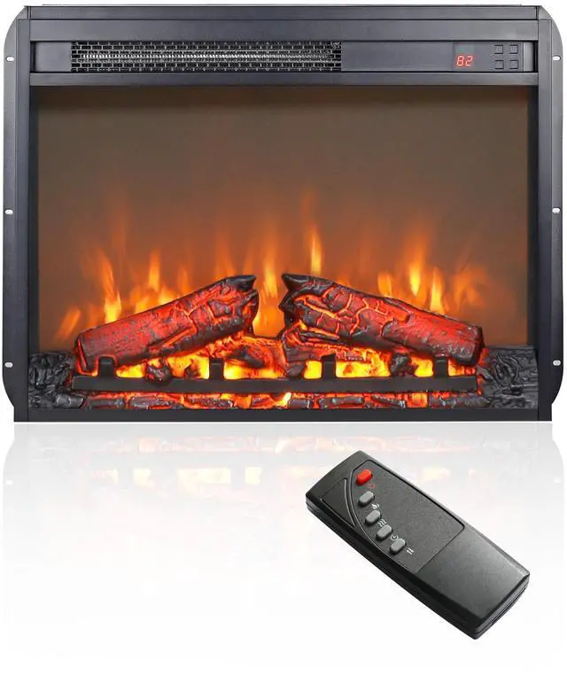 23 inch electric fireplace insert, ultra thin heater with log set & realistic flame, remote control with timer, overheating protection