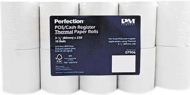 The paper rolls are guaranteed to work efficiently with your machine printhead to provide crisp, clear, black images. The reliability and performance of a thermal printer is directly related to the quality of the supplies, including the paper, used by the customer. The IBM Testing Process is an "Industry Standard" test for the thermal papers used in the marketplace. To be IBM approved, the paper must pass a 100km of paper printhead test without abrasion or build-up, with no cutting failures. IBM testing only confirms that the use of approved papers will not negatively affect the operating life of an IBM thermal printer. Manufactured to OEM specifications. Cash Register, Credit Card Machines, Gas Pump Rolls, Mobile Printers, Calculators/Adding Machines. Sheet/Roll Size: 3.13" x 230 ft; Paper/Media Color(s): White; Color Family: White; Machine Compatibility: Adding Machines; Calculators; Cash Registers; POS Machines.