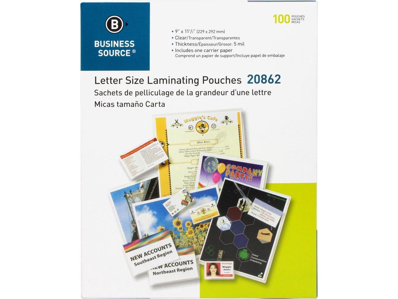 Business Source Laminating Pouch Ltr 5Mil 9"x11-1/2" 100/BX Clear 20862