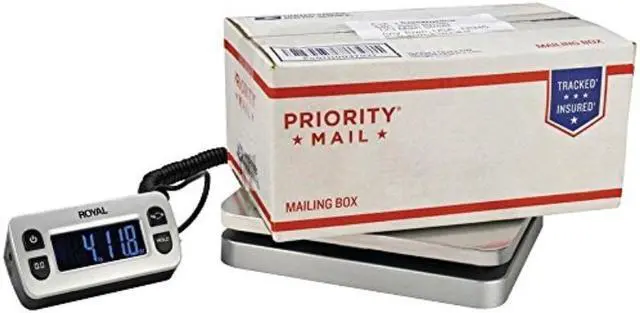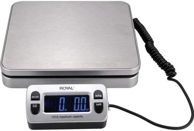 The Royal DG110 110lb-Capacity Postal Scale is a replacement for the discontinued DS35 scale. Don\'t let the pictures fool you: it\'s a major upgrade. The base is not as big as an 8.5 in. by 11 in. piece of paper yet its digital accuracy is enough to handle first-class mail as well as packages weighing up to 110 pounds.. 110lb capacity. Tare & hold features. Displays weight in pounds/ounces/metric. Compact size--takes less desk space than a 8.5" x 11" piece of paper