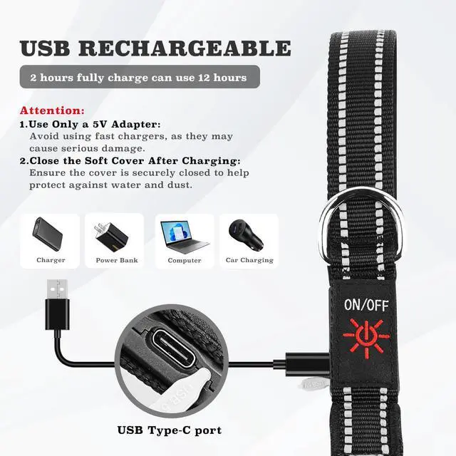 USB Rechargeable for Long-Lasting Use: Recharge this luminous pet leash in just 1.5 hours and enjoy up to 10 hours of continuous light. This LED dog leash rechargeable feature makes it perfect for evening walks, hikes, and other nighttime activities.