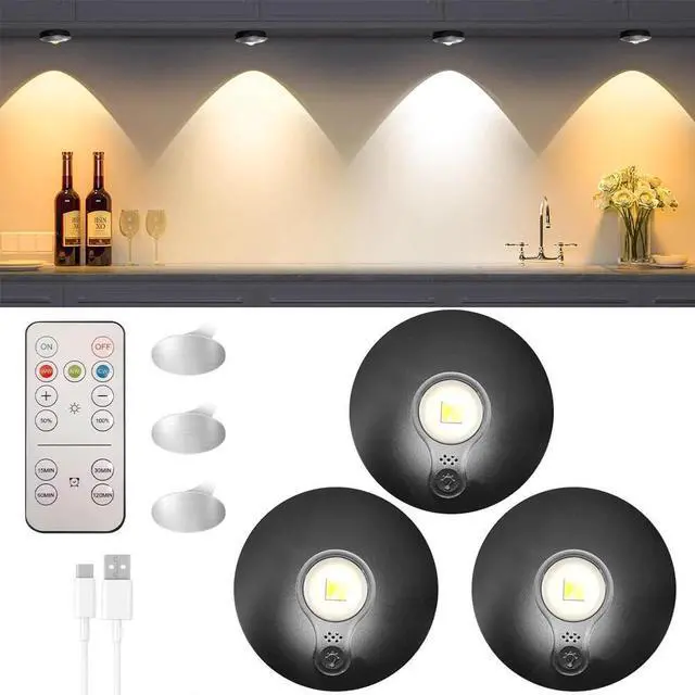 3PCS LED Puck Light Wireless Under Cabinet Lighting Kit Kitchen Counter Light US