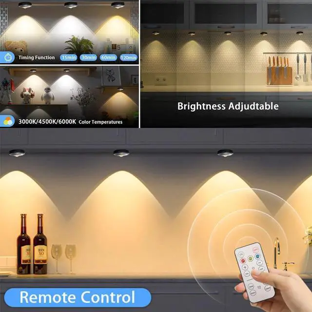 3 Color Temperatures & Dimmable: These tap lights offer three color temperatures suitable for human lighting: warm white (3000K), natural white (4500K), and cool white (6000K). 5 levels adjustment for brightness by using the remote, short touch the on/off button to change the color, long touch to stepless adjust the brightness. Adjust the color temperature according to your mood and enjoy the best lighting experience.