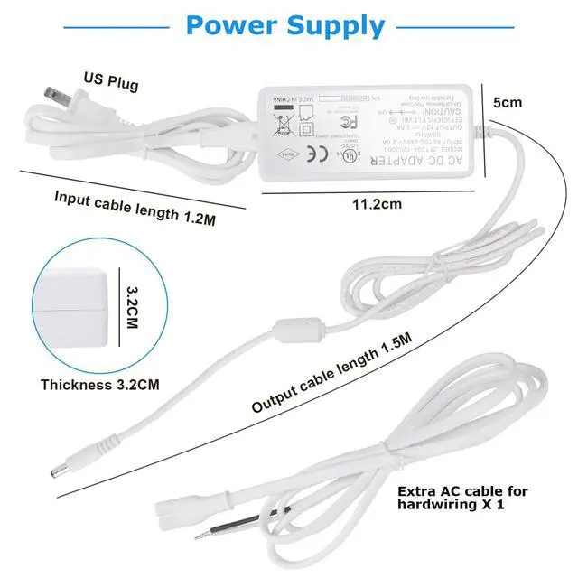 - An extra pre-cut AC cable for hardwiring the power adapter to your 110VAC circuit.