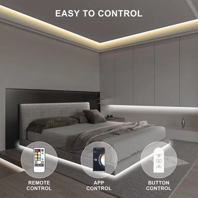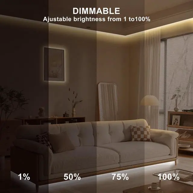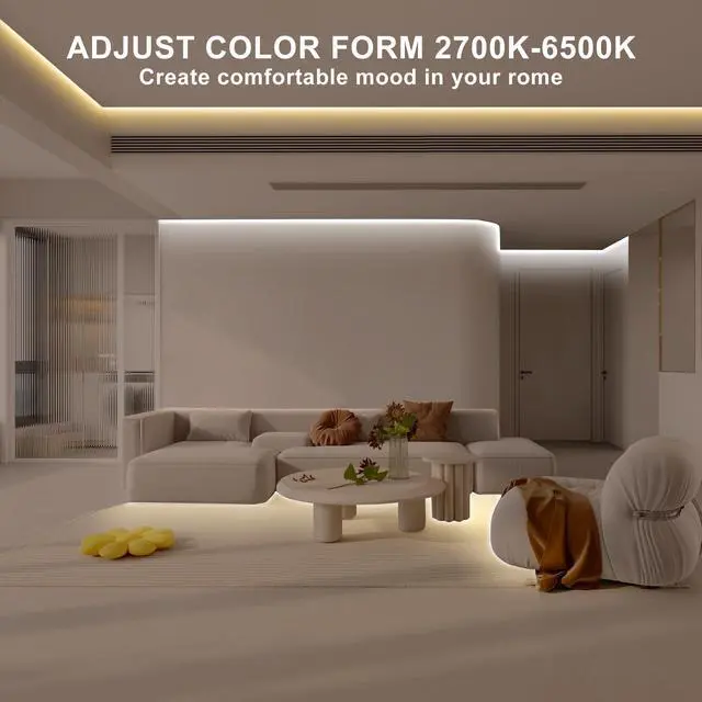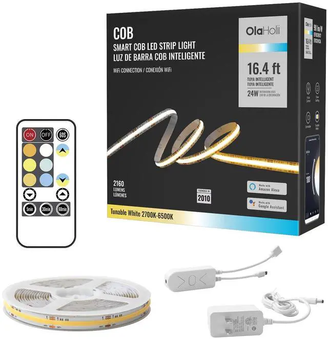 Enhance your living space with the Olaholii 16.4ft Smart Tunable White LED Strip Light. This versatile lighting solution allows you to adjust the color temperature from warm white to cool white (2700K-6500K), creating the perfect ambiance for any occasion. With smart voice control compatibility, you can effortlessly operate the LED strip light using Alexa or Google devices. Customize the brightness from 1% to 100% to suit your preferences, and enjoy the flexibility of bending and cutting the strip to fit your desired layout. Multiple control options, including a controller button, app, and IR remote, provide convenience at your fingertips.