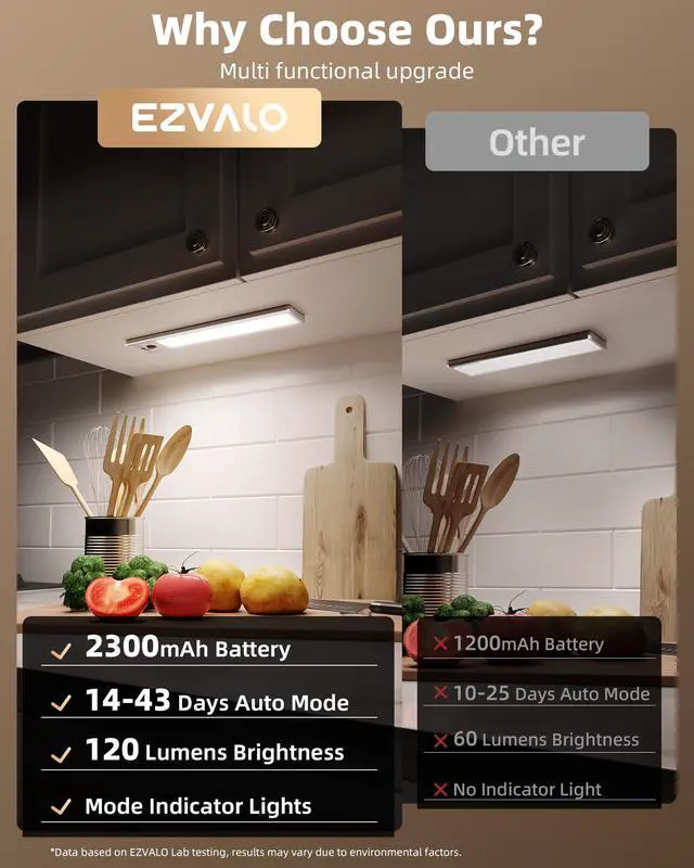 Four Lighting Modes with LED Indicators: These under counter lights for the kitchen feature four modes to meet the needs of different occasions: Always-On Mode (constant light), All-Day Motion Mode (activates with motion anytime), Night Motion Mode (only turns on in darkness), and Off. These lighting modes of the motion sensor light have a clear LED indicator light. The auto-sensing technology saves energy while providing the perfect lighting when you need it