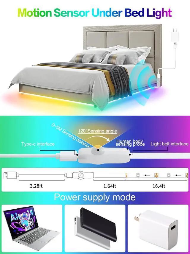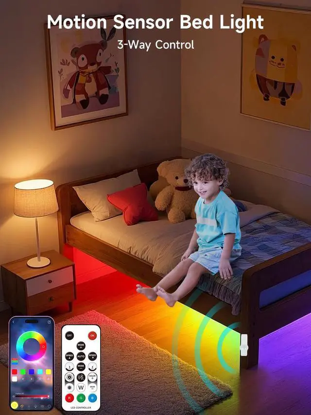 Motion Sensor Bed LightThree control methods - sensor, mobile APP, and remote control, allow you to easily grasp the status of the motion sensor led light strip and create a better bedroom atmosphere.