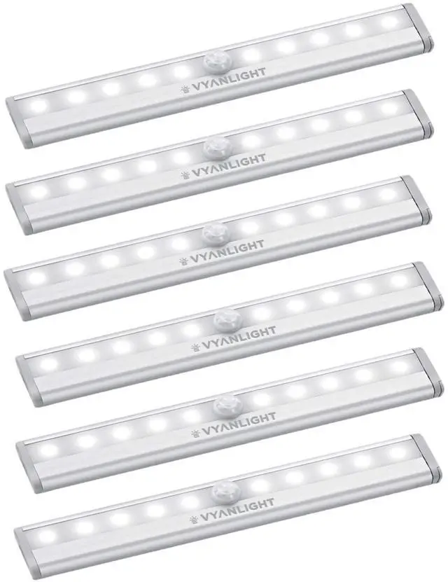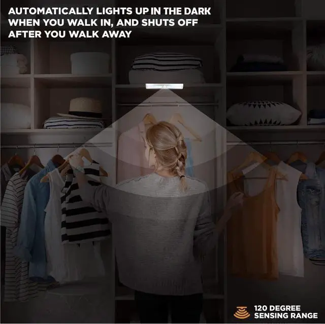 These 10 LED Motion Sensor Closet Lights by VYANLIGHT use the passive infrared technology (PIR) to auto turn on in the dark, as soon as you are within 10 feet and stay on as long as motion is detected.