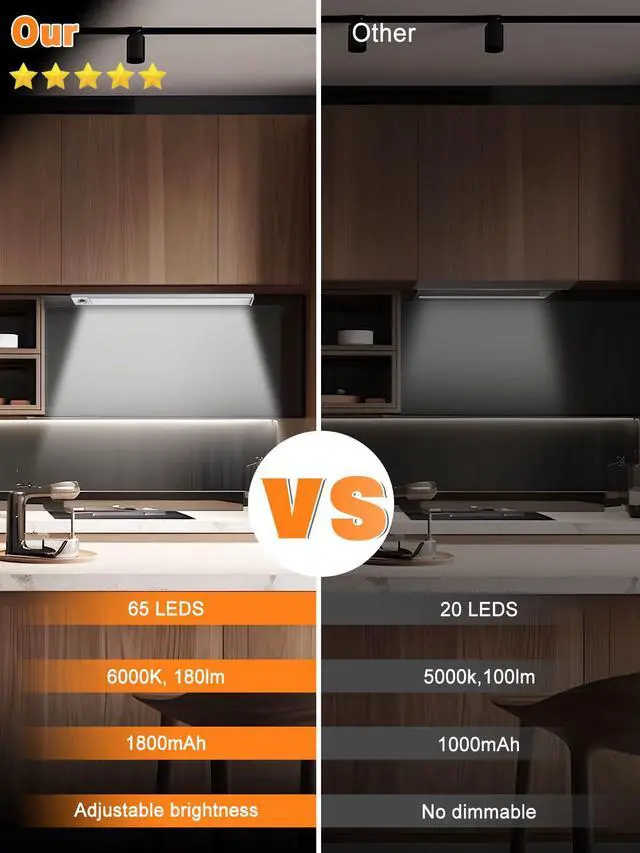 These wireless under cabinet lighting come with a built-in larger 1800mAh high-capacity rechargeable battery and high lumen rate, ensuring longer working time compared to other lights on market.