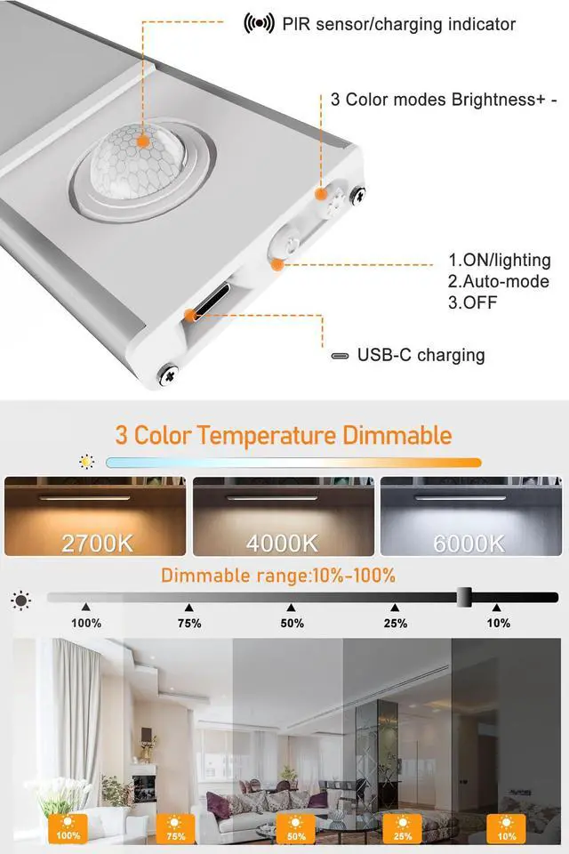 Updated to combine with 3 color temperatures, these under cabinet lights can be easily adjusted to your preferred lighting effect by simply pressing the button, bringing you specific lighting atmospheres for your home.