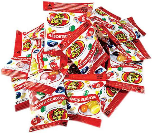 Assorted jelly beans in 0.35 oz bags. Great candy for a handout or giveaways at events and meetings. Plus, they can double as a quick snack! Food Type: Jelly Beans; Flavor: Assorted; Capacity (Weight): 0.35 oz; Gluten Free: Yes.