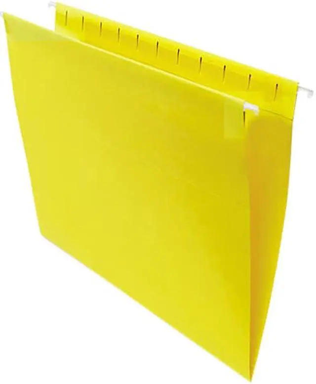 Organize files by color for easier identification. Match with same color interior folders, sold separately, for quick filing. Vivid folders are constructed of 11 pt. stock. Includes clear index tabs and inserts. Folder Size Type: Letter; Folder Color: Yellow; Color Family: Yellow; Folder Material: 11-pt Stock.