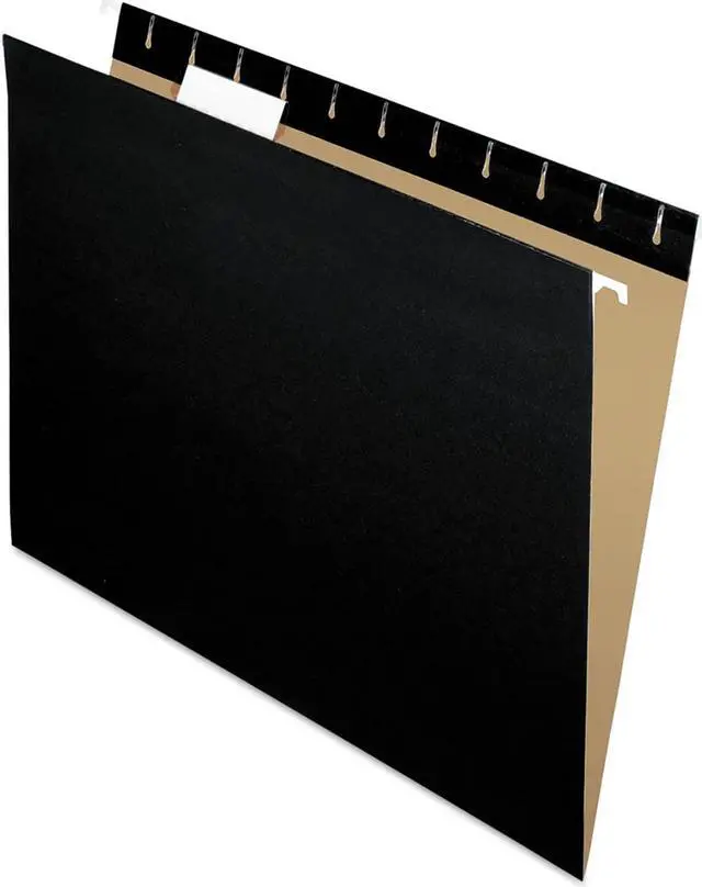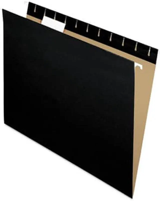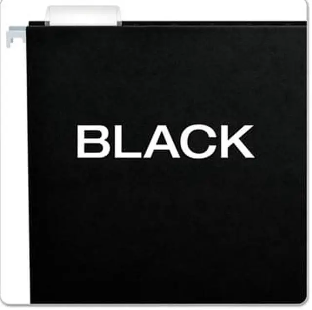 Put color to work in your filing system. Vividly colored folders are indispensable for all of your office and home filing needs. Two-tone design, with a Kraft interior, helps prevent misfiling. Includes clear tabs and blank white inserts (unless otherwise noted). Folder Size Type: Letter; Folder Color: Black; Color Family: Black; Folder Material: 11-pt Stock.