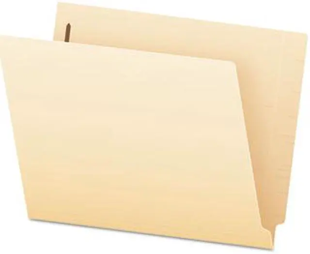 Smart Shield end tab fastener folder is made with a material that inhibits the growth of mold and mildew to protect the product. Constructed with durable 11 pt. Manila, these letter-sized folders feature a full-length reinforced end tabperfect for open-shelf filing systems. The 2" embedded fasteners secure documents. Folder Size: Letter; Total Number of Dividers: 0; Total Number of Fasteners: 2; Cover Tab Style: End Tab.