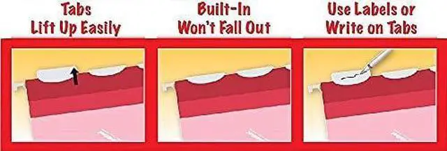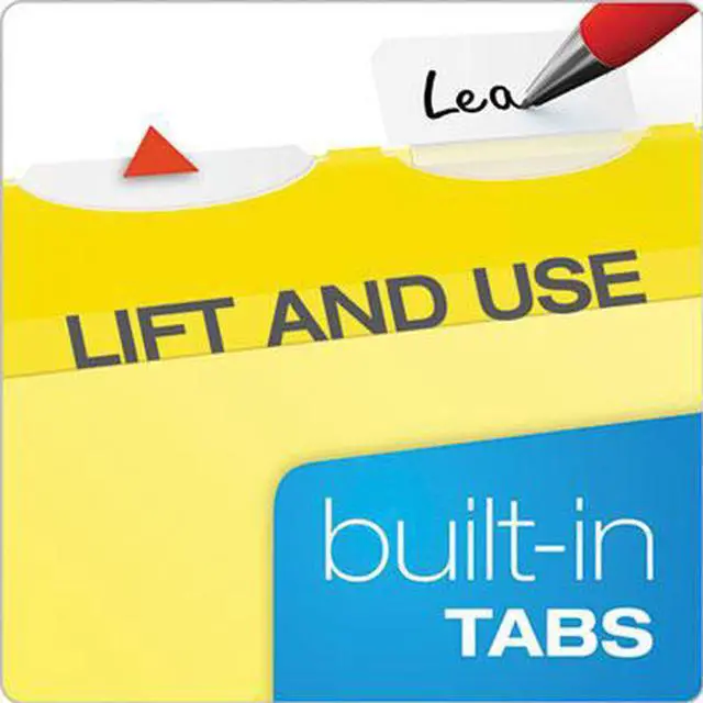 Yellow 11 pt. folders hold up to wear and tear. 5 Built-in tabs for faster file setup: simply lift the position you need. Tabs are pre-attached to the folder and include letter-size printer-ready inserts. Improved icon instructions for easy assembly, first time or anytime. Made in the USA.