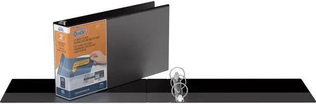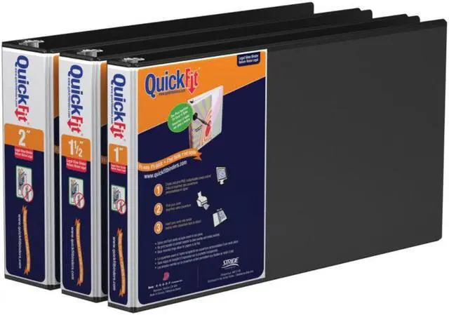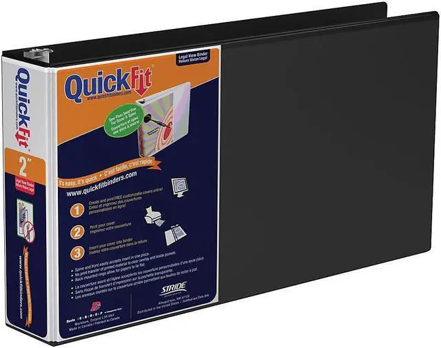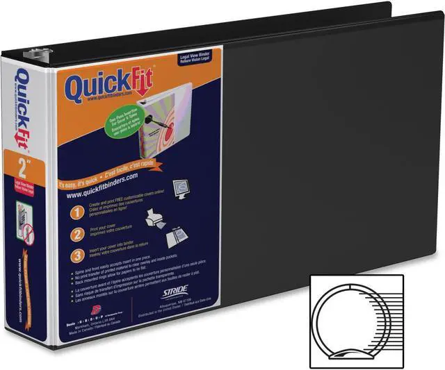 This Stride landscape-oriented legal binder keeps up to 400 8.5 x 11 inch sheets organized, providing ample space for long reports or multiple files. A clear overlay wraps from the spine to the front cover and lets users use one sheet of 14 x 8.5-inch paper to create a custom insert for both areas. With board covers wrapped inside polypropylene, these binders deliver durability that withstands daily use. Two interior nonstick pockets provide additional storage for loose pages and won't lift printed ink. This Stride QuickFit 2-inch round ring view binder also features antimicrobial to prevent bacterial growth on product.