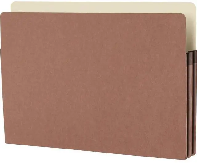 Sturdy file pocket manages bulky records with an accordion design that easily allows expansion. Durable rollover Tyvek reinforcement at the top of the gusset makes the sides virtually tearproof. File pocket has a drop-front style for easy access. File pocket is made of redrope stock.