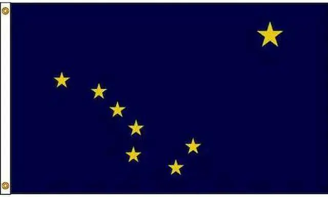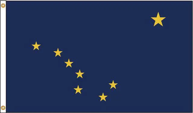 State Flag, Alaska, Indoor/Outdoor, Style Screen Printed, Single/Reverse Image, Header and Grommets, Flag Height 4 ft., Flag Width 6 ft., Min. Flagpole H 25 Ft., Material 200 Denier Nylon, For Use With Flag Staff or Flag Pole. This item has been restricted from sale in the following state (s): []