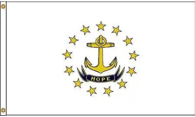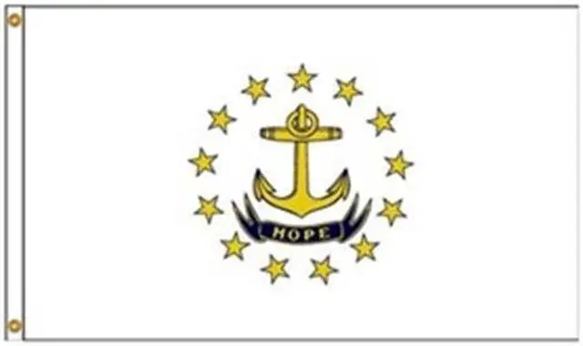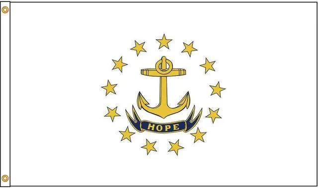 State Flag, Rhode Island, Indoor/Outdoor, Style Screen Printed, Single/Reverse Image, Header and Grommets, Flag Height 4 ft., Flag Width 6 ft., Min. Flagpole H 25 Ft., Material 200 Denier Nylon, For Use With Flag Staff or Flag Pole. This item has been restricted from sale in the following state (s): []