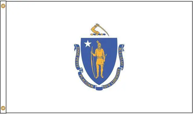 State Flag, Massachusetts, Indoor/Outdoor, Style Screen Printed, Single/Reverse Image, Header and Grommets, Flag Height 4 ft., Flag Width 6 ft., Min. Flagpole H 25 Ft., Material 200 Denier Nylon, For Use With Flag Staff or Flag Pole. This item has been restricted from sale in the following state (s): []