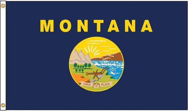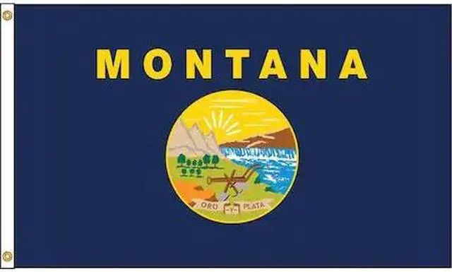 State Flag, Montana, Indoor/Outdoor, Style Digital Single/Reverse Image, Header and Grommets, Flag Height 4 ft., Flag Width 6 ft., Min. Flagpole H 25 Ft., Material 200 Denier Nylon, For Use With Flag Staff or Flag Pole. This item has been restricted from sale in the following state (s): []