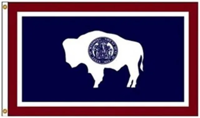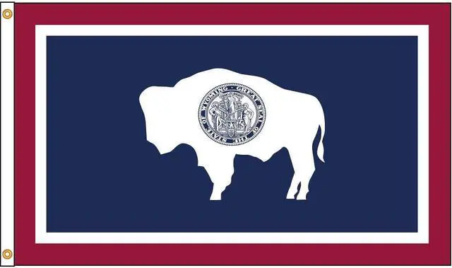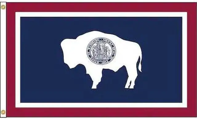 State Flag, Wyoming, Indoor/Outdoor, Style Digital Single/Reverse Image, Header and Grommets, Flag Height 4 ft., Flag Width 6 ft., Min. Flagpole H 25 Ft., Material 200 Denier Nylon, For Use With Flag Staff or Flag Pole. This item has been restricted from sale in the following state (s): []