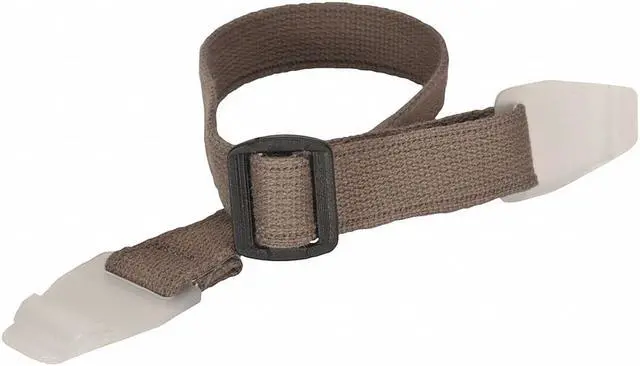 Chin straps attach directly to a hard hat and are adjustable to ensure a secure fit.Hard hat chinstraps clip onto hard hats to keep the hat secured in high winds or when working at heights. Hard hats with added chin straps are an alternative to climbing helmets, though they don't provide the same coverage for the back and sides of the head that climbing helmets provide. Chin Strap, Cotton, Tan, PK10