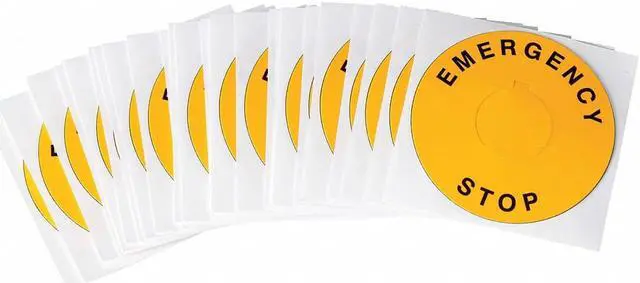 These push-button labels are pre-printed for use with emergency stop buttons on industrial machines. Legend Plate Label, Rnd, 22mm, E-Stop, PK25