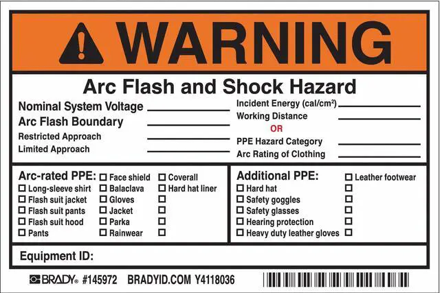 Label, 4in. Hx, 6in. W, Warning Arc Flash, PK5 This product contains a chemical that is regulated under California Proposition 65.