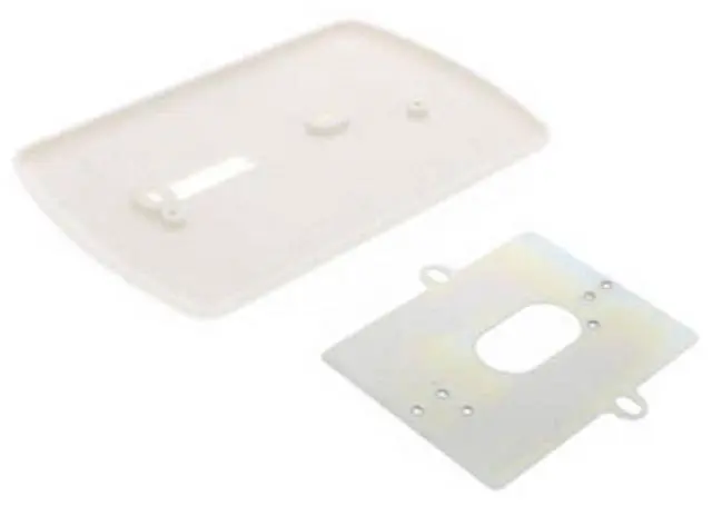 This plastic white wall plate is durable and covers marks left by previously installed thermostats, eliminating the need to repaint or apply new wallpaper. Wall Coverplate, Use with Thermostat 1RC44, 1RC45, 1RC47, 3MY12, 3MY13, 3MY14, 3MY15, 3MY16, 3MY17, Color White, For White Rodgers Comfort Set, 80 Series