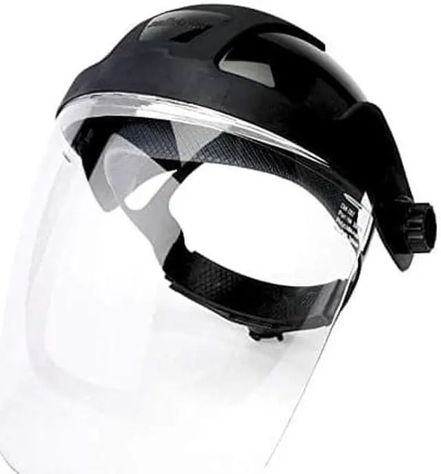 DP4™ ratchet headgear with faceshield assembly combines full-face coverage with an antifog visor, eliminating the need to wear 2 protective devices. The polycarbonate visor provides high clarity and is great for heavy-duty impact and heat-resistance applications. It provides UV/IR protection during griding, cutting, and brazing operations. Ratchet Faceshield Assembly, Visor Material Polycarbonate, Visor Color Clear, Visor Thickness 0.060 In., Visor Width 8 In., Visor Height 8 In., Dielectric Protection No, Headgear Material Nylon, Standards ANSI Z87 + High Impact, CAN/CSA Z94.3, CE Certified, Headgear Color Black, Faceshield Assembly/Headgear Suspension Ratchet, Headgear Style Full Crown, Visor Coating Anti-Fog, Disposable/ Reusable Reusable, Features Multi-Purpose Anti-Fog Visor, Includes Faceshield, Crown and Ratchet Headgear