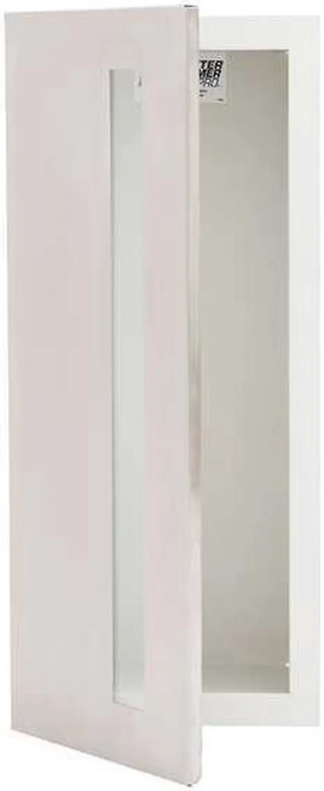 Fire Extinguisher Cabinet, Mounting Style: Recessed, Indoor/Outdoor: Indoor, Capacity: 10 lb., Height: 26-3/4", Width: 11-3/4", Depth: 5-3/4", Cabinet Material: Cold Rolled Sheet, Window Material: Tempered Glass, Cabinet Color: Stainless Steel, Window Color: Clear, Wall Opening Depth: 6", Wall Opening Height: 25", Wall Opening Width: 10"
