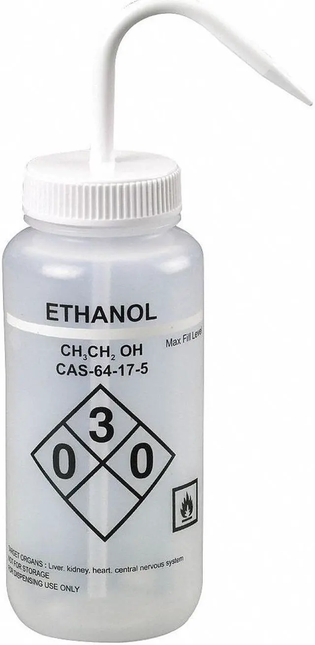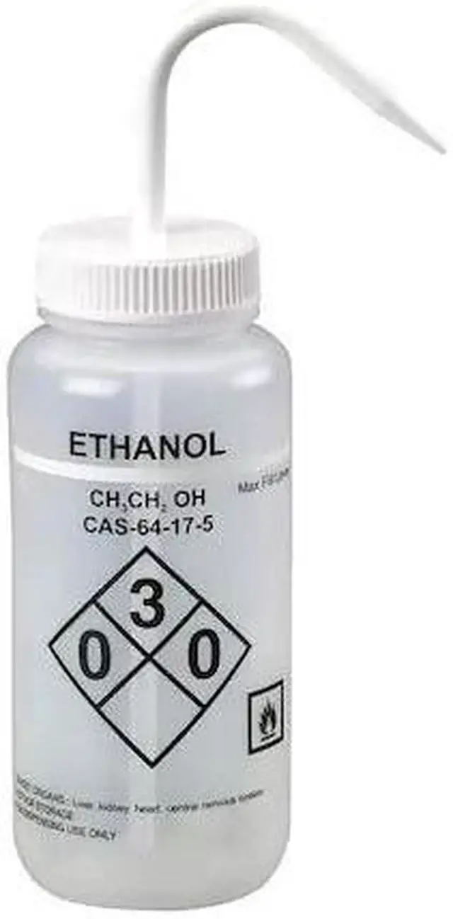 California Proposition 65: This product contains a chemical known to the State of California to cause birth defects or other reproductive harm. Wash Bottle, Labware Capacity - English 16 oz, Labware Capacity - Metric 500 mL, Standard Spout, Labware Basic Material Plastic, Labware Body Material LDPE, Labware Closure Material Polypropylene, Wide Mouth, Vented/Nonvented Vented, Labware Closure Color White, Labware Clarity Translucent, Labware Imprinting Ethanol, Autoclavable No, Labware Body Color White Frosted, Labware Height - English 8.97 in, Labware Height - Metric 230 mm, Diameter 72.1 mm, Package Quantity 6. This item has been restricted from sale in the following state (s): []