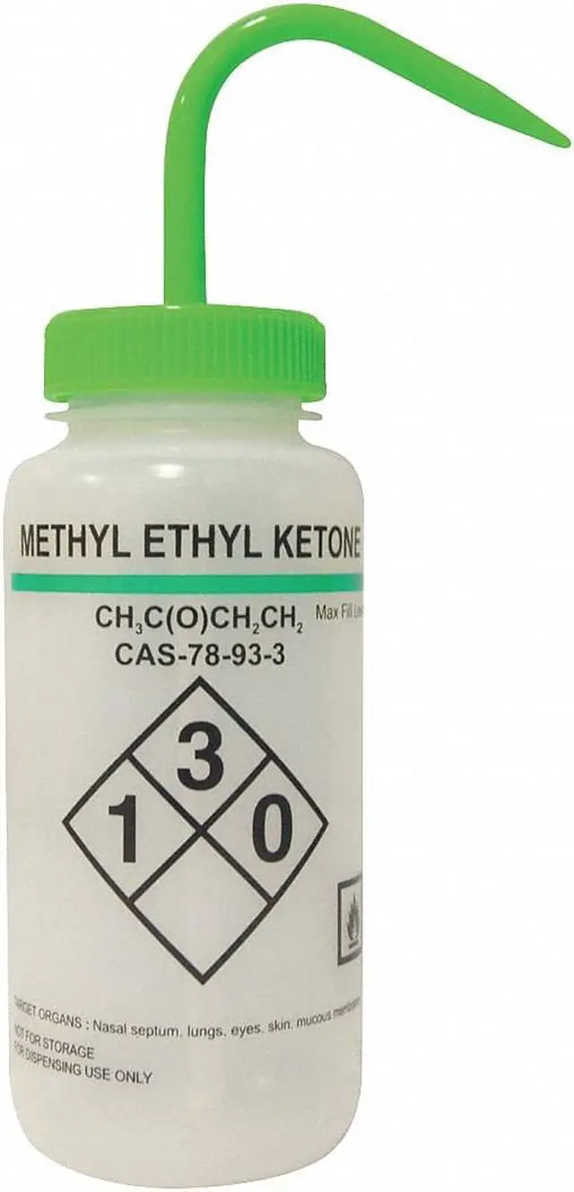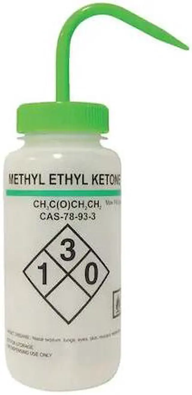 California Proposition 65: This product contains a chemical known to the State of California to cause birth defects or other reproductive harm. Wash Bottle, Labware Capacity - English 16 oz, Labware Capacity - Metric 500 mL, Standard Spout, Labware Basic Material Plastic, Labware Body Material LDPE, Labware Closure Material Polypropylene, Wide Mouth, Vented/Nonvented Nonvented, Labware Closure Color Green, Labware Clarity Translucent, Labware Imprinting Methyl Ethyl Ketone (MEK), Autoclavable No, Labware Body Color White Frosted, Labware Height - English 8.97 in, Labware Height - Metric 230 mm, Diameter 72.1 mm, Package Quantity 6. This item has been restricted from sale in the following state (s): []