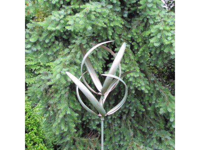 Wind spinner lawn ornament includes stakes that plant directly into the soil of your garden or yard