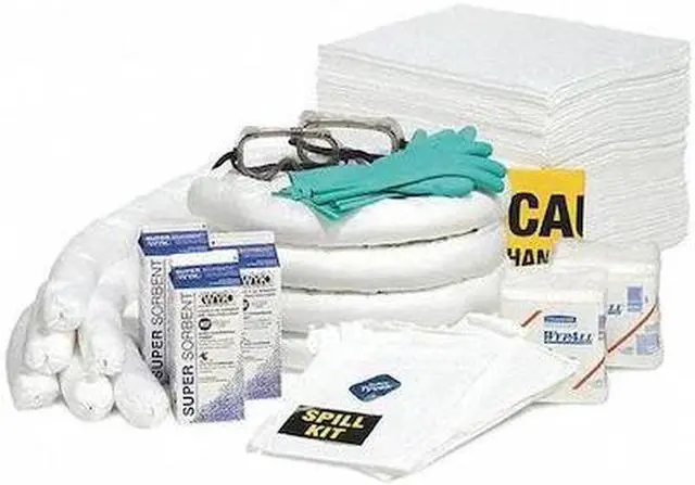 Spill Kit Refill, Fluids Absorbed Oils, Neutralizes Chemical Type Not Applicable, Volume Absorbed Per Kit 46 gal, Container Type Box, 50 gal Container Capacity, Not Applicable, Filled, Sorbents Included (100) Oil-Only Pads (15 in W x 19 in L), (2) 56 packs Wipers, (4) Oil-Only Sorbent Socks (3 in D x 12 ft L), (6) Oil-Only Sorbent Socks (3 in D x 4 ft L), PPE Included (2) Coveralls, (2) Pairs Nitrile Gloves, (2) Pairs Goggles. This item has been restricted from sale in the following state (s): []