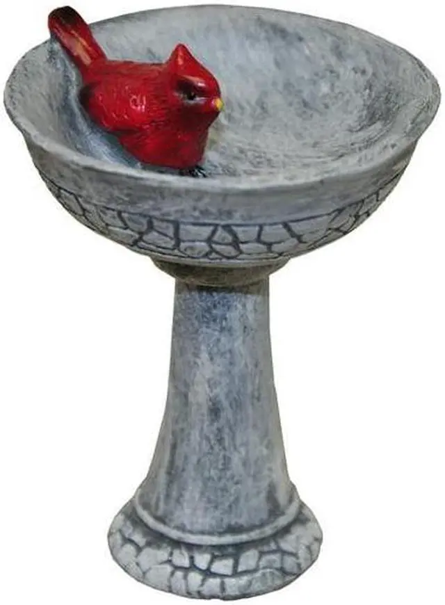 Part of G & F MiniGardenn Collection, this cute bird bath is a great accessory to any fairy garden. The bath and the cardinal have been hand painted, and look just like the real thing! The bath can be filled with water for added detail, and can be used indoors and outdoors. The two inch metal base pick makes the piece easy to mount on any indoor or outdoor fairy garden. Whether you're just starting your fairy garden or have been building one for years, this accessory makes a beautiful addition to any fairy garden.