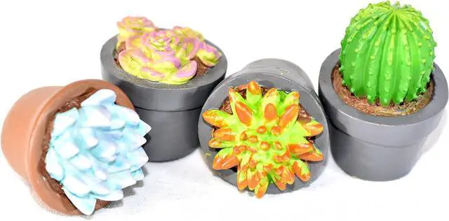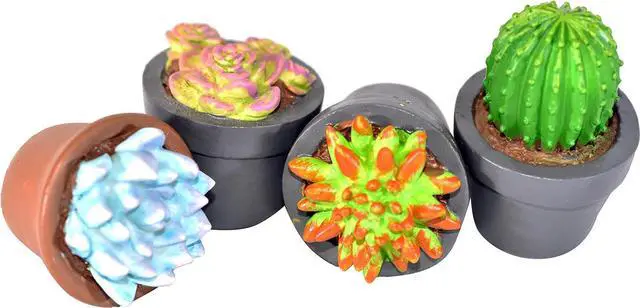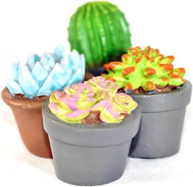 Brighten up your home or office with the natural-looking beauty of these artificial succulent plants. Made of durable green plastic, these 3 synthetic plants are each designed to look like a different kind of succulent. Each one of the four plants is housed in its own white ceramic plant pot that also comes with a collection of multicolored pebbles that covers the base of the plant. Arrange these mini artificial succulents center together or display them apart of decorate any tabletop, window sill, or desktop in your home or office, or give this lovely set at a gift for family & friends.