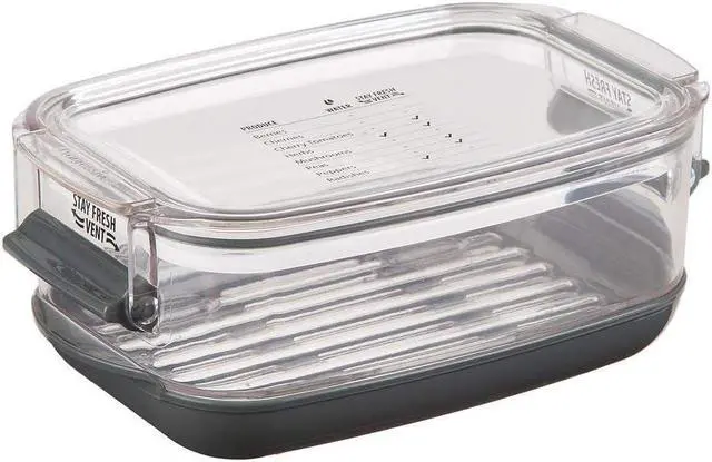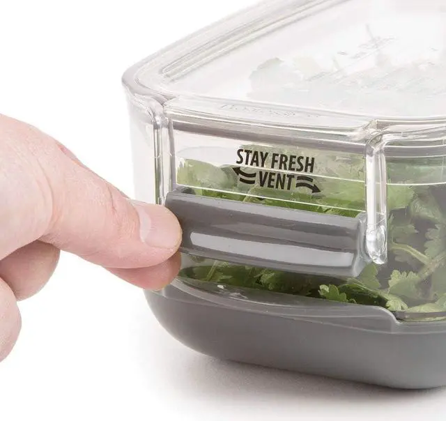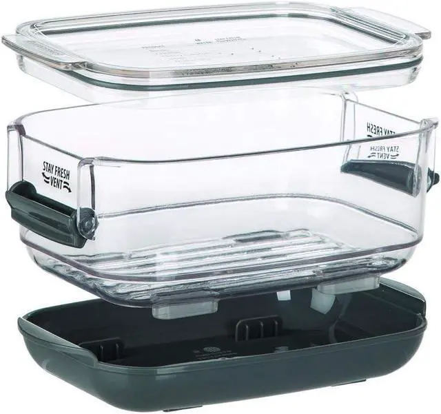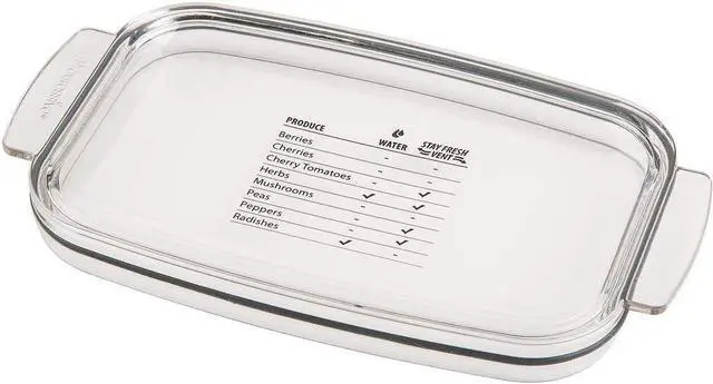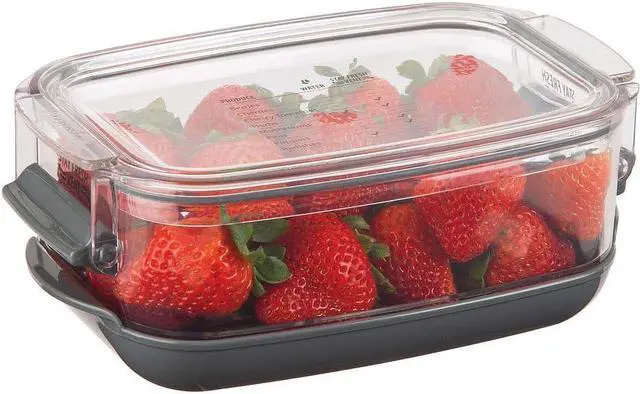 Keep produce fresh up to 2-times longer with the Prepworks Berry ProKeeper by Progressive. The Flow-Through Stay-Fresh vent system and reservoir base allows you to customize the environment for maximum freshness for all your fruits and vegetables. The clear, press-in lid features a printed storage guide for common produce. You can remove the bottom cover to use it as a colander; rinsing and storing produce in one container. The grooved colander base promotes air flow and drains excess water. This berry keeper has a 1.2 -quart capacity and can hold up to 1-pint of dry berries and is ideal for blueberries, blackberries, strawberries, cherries and cherry tomatoes.