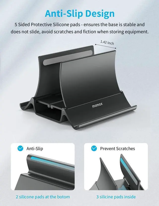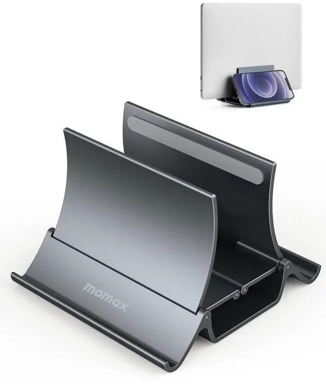 - [Wide Compatibility and Lifetime Warranty]Compatible with all laptops from 4" up to 17.3" like Apple MacBook, Microsoft Surfac, Google Pixelbook, Dell XPS, Chromebook and more Laptop / Notebooks. The vertical laptop stand holder provides more storage functions than the average laptop stand, it is also compatible with iPhone, Kindle, Tablet, Book, Document, Smartphones, and more.