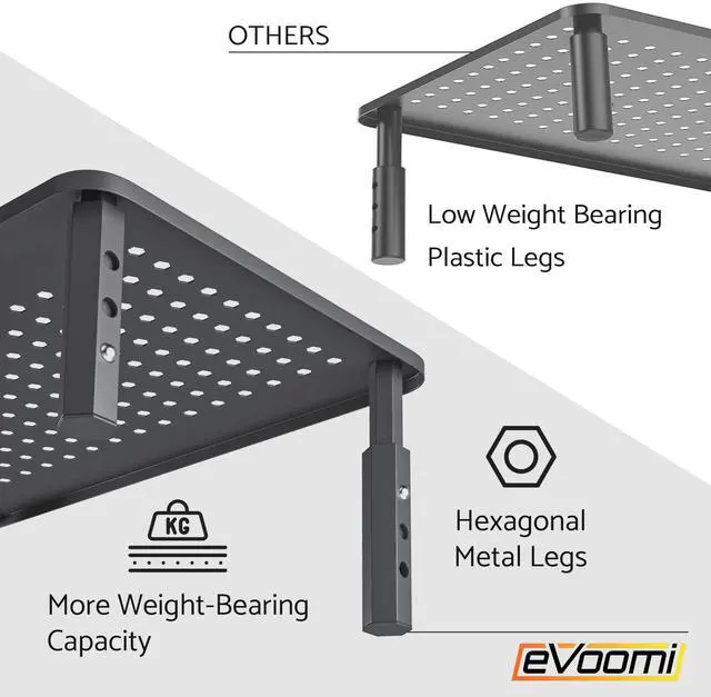 [UPGRADE #2, 2022] - THE STRONGEST monitor stand on the market is now even stronger with Heavy Duty HD Steel legs, single piece molded into the Strongest shape in the world; the hexagon. So it holds more, moves less and is the laptop stand for desk to get if you want a dual monitor stand you never have to worry about bumping.