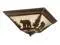 Product Finish: Burnished Bronze Glass Type: Amber Flake Glass Number of Bulbs: 3 Wattage: 60W Bulb Type: Medium Rating: DryOverall Dimensions: 5.75"(h) x 14"(w) x 14"(d)