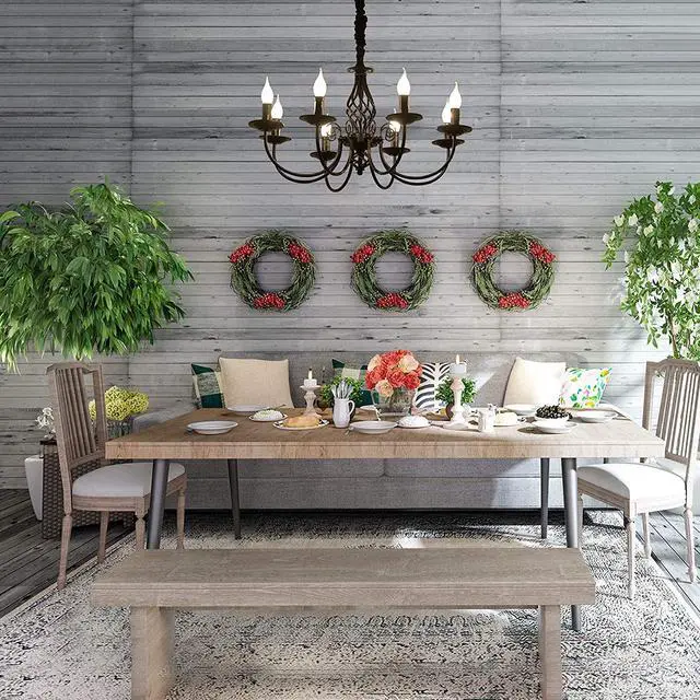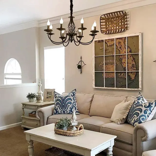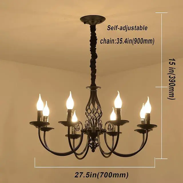- This iron chandelier is compatible with all ceiling types including flat, sloped, slanted and vaulted ceilings.