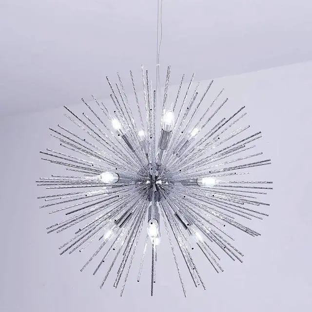 This large size (Dia 29.5in) chrome firework pendant light is suitable for some large areas. Fully dimmable, when using dimming bulbs and dimming switch at the same time.