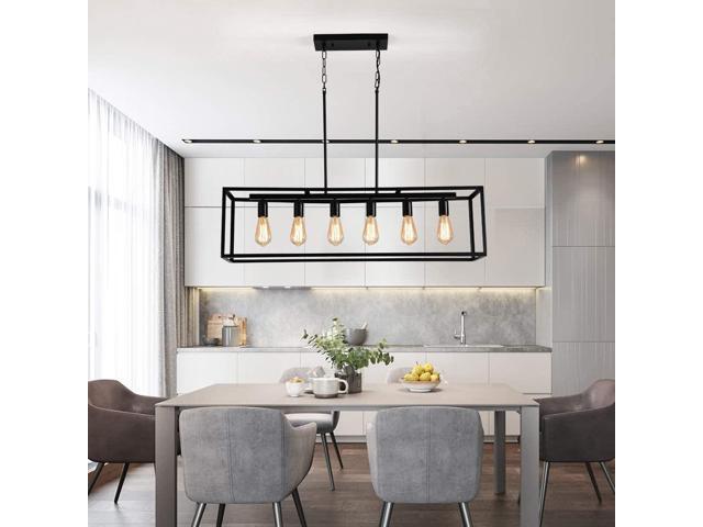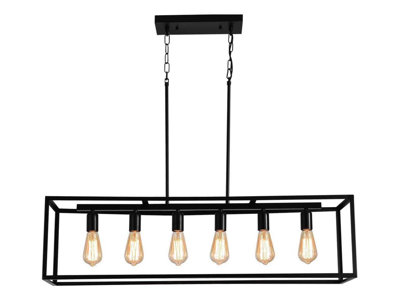 Garwarm 6 Light Rectangle Chandelier,Black Metal Linear Modern Pendant Lighting,Industrial Cage Kitchen Island Ceiling Light Fixture for Dining Room Kitchen