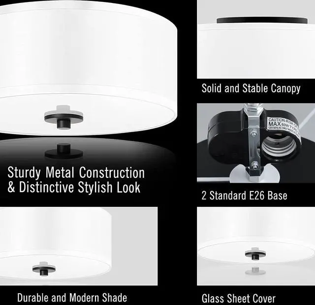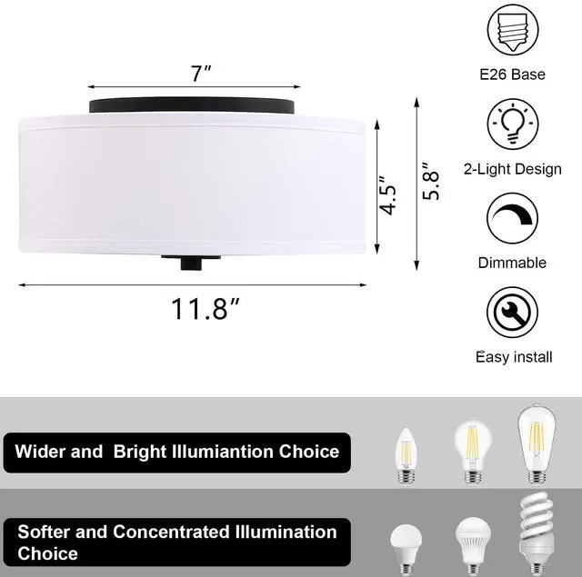 Two standard E26 sockets are fitted into this fabric ceiling light, Two different lighting angles lighten your house maximum.