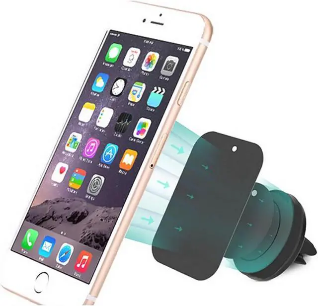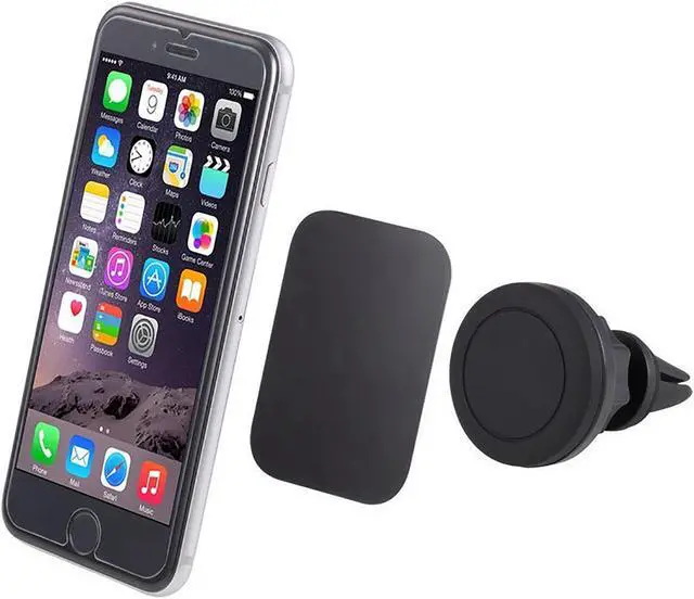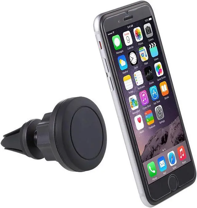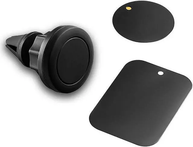 Magnetic car phone mount compatible with most smartphones as well as their cases and GPS devices.